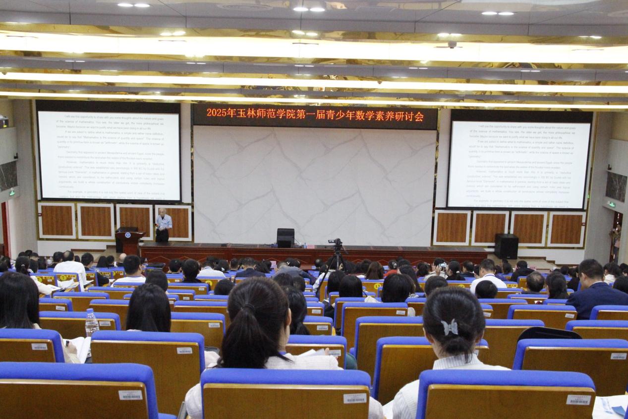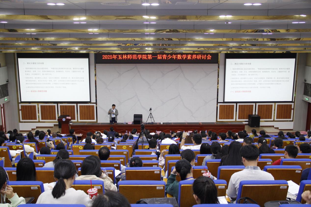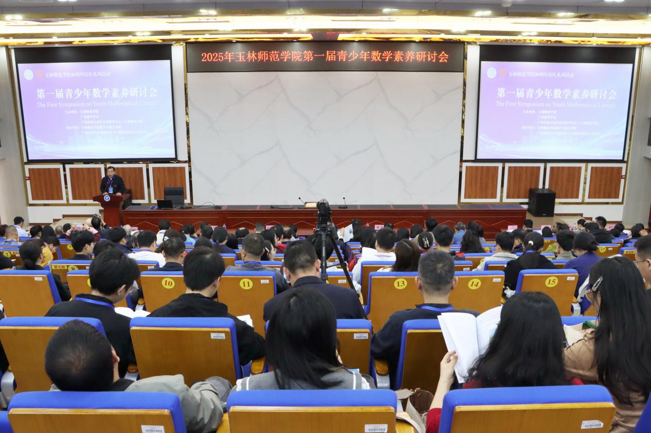 为推动数学素养教育发展,促进数学与多学科交叉融合,助力青少年创新人才培养,10月22日-24日,建校80周年校庆活动专题系列:2025年玉林师范学院第一届青少年数学素养研讨会在我校东校区新民楼D101隆重召开。此次研讨会由玉林师范学院、广西数学学会、广西壮族自治区应用数学中心(玉林师范学院)联合主办,玉林师范学院数学与统计学院、广西高校复杂系统优化与大数据处理重点实验室共同承办。本次会议共有来自玉林市各县(市、区)320余名中小学数学骨干老师参会。